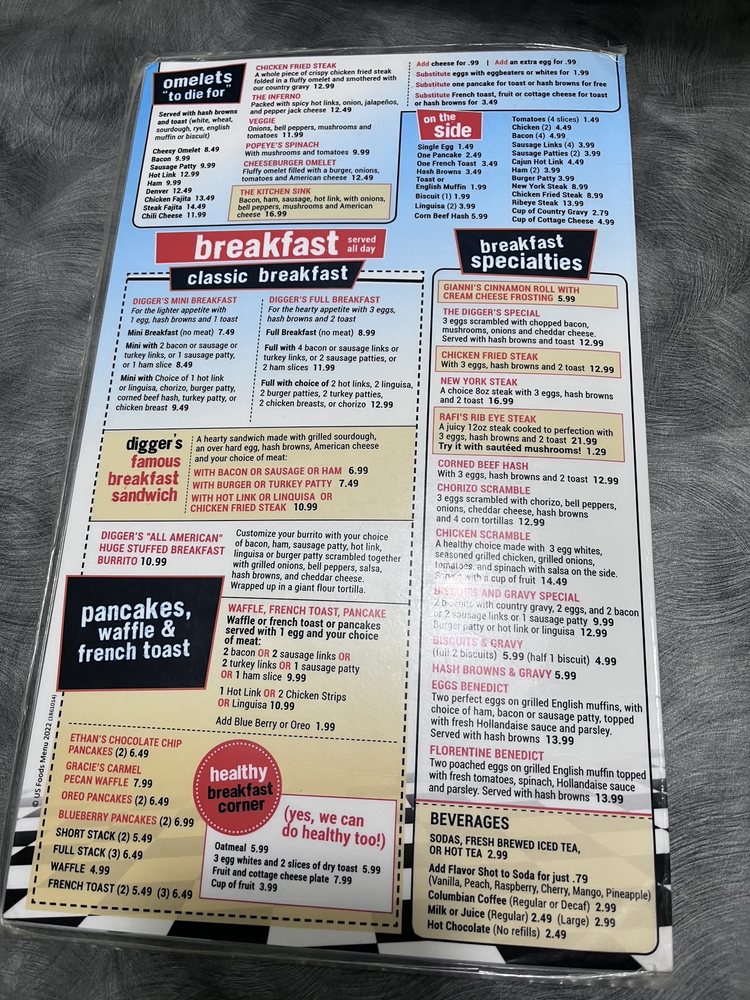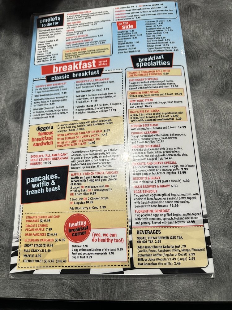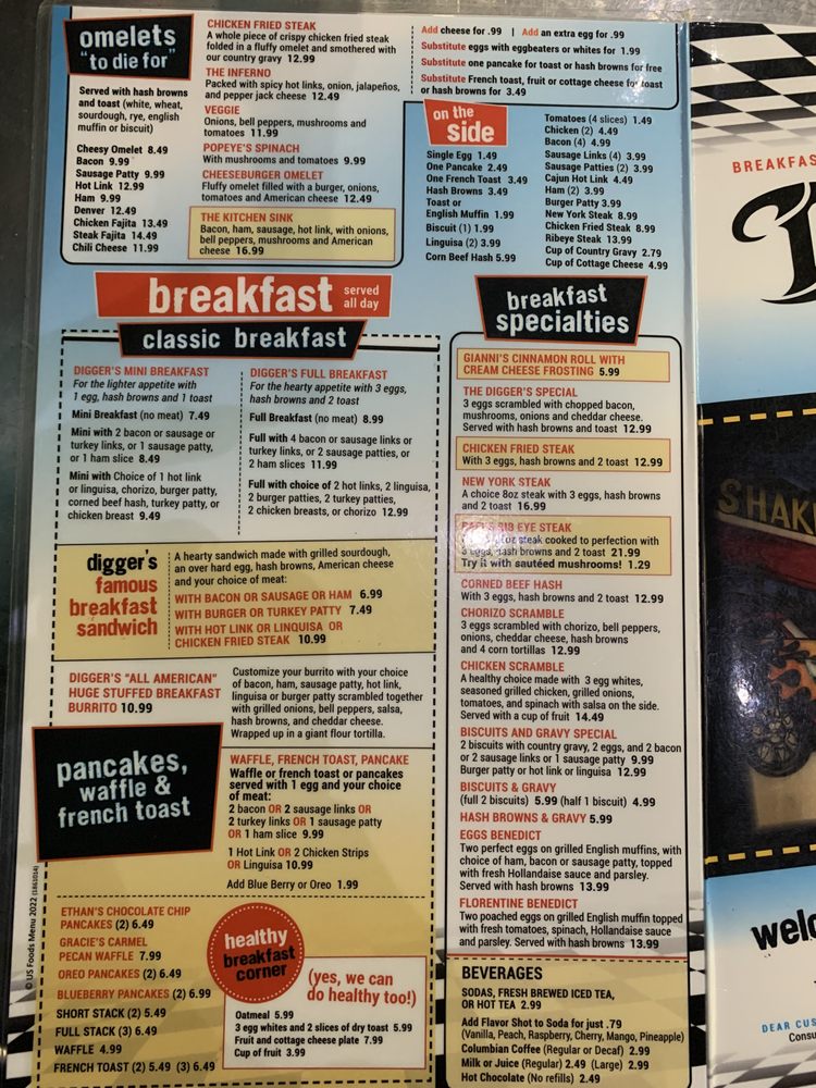 With a casual ambiance suited for families and friends, Digger’s Diner is the perfect spot for breakfast, lunch, or dinner. Enjoy covered outdoor seating and the convenience of takeout or delivery. Come savor the hearty, soul-warming dishes that make Digger’s a local gem!